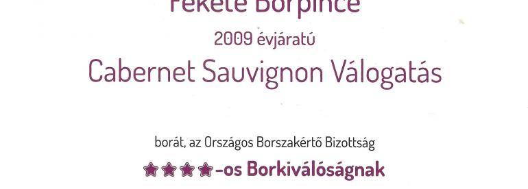 A pince 2009-es cabernet sauvignon válogatás bora a 2013-as bordeaux-i aranyérem és a Vince Magazin Ikonborok tesztjén a 4. helyezés elnyerése után újabb elismerést vívott ki: az Országos Borszakértő Bizottság a Nemzeti Borkiválóság Program keretében 4 csillagos minősítést adott a bornak.